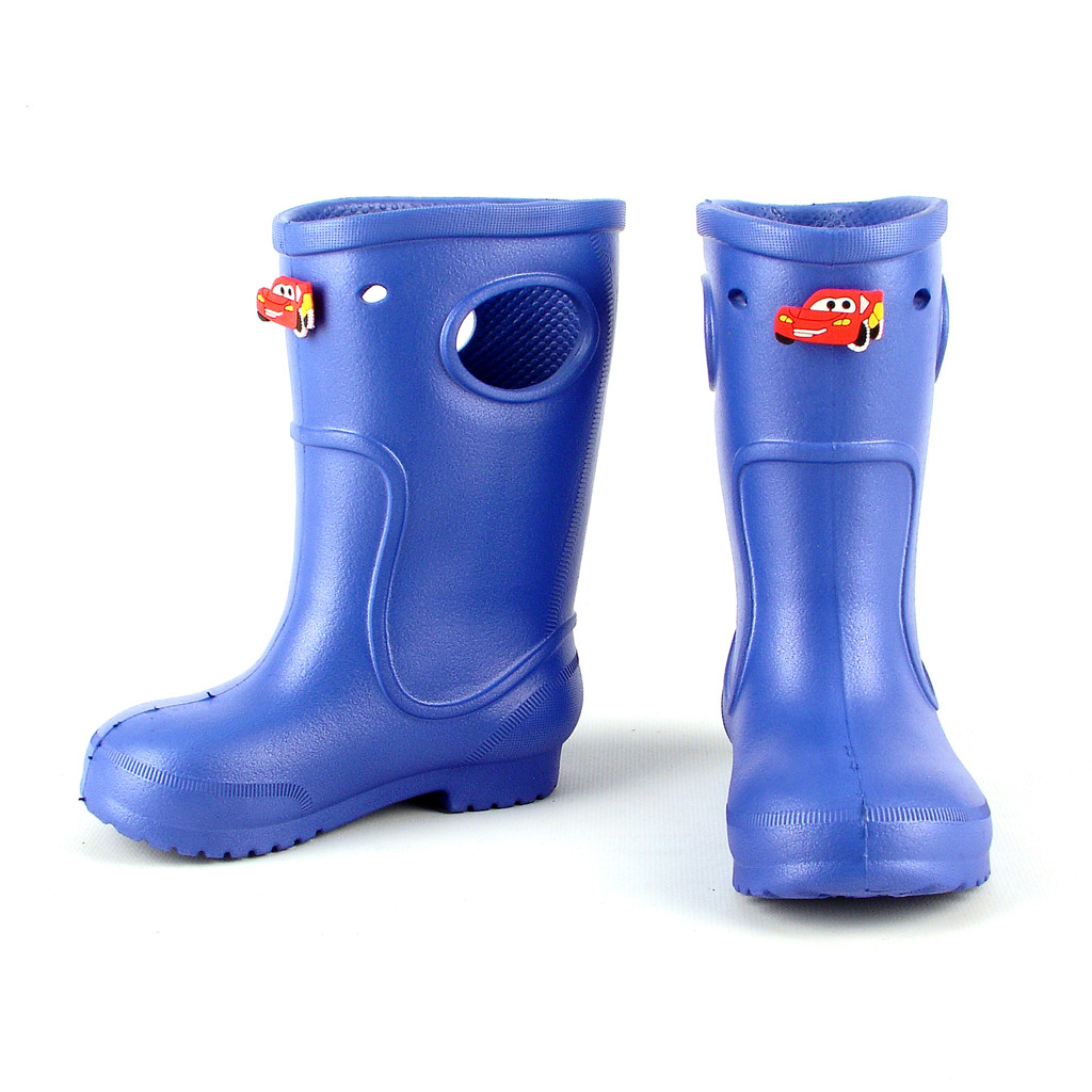 Дитячі суцільнолиті чоботи з ЕВА – новинка цього сезону. Дитячі чобітки для хлопчиків і дівчаток продаються оптом безпосередньо від виробника, що, безсумнівно, позитивно позначається на їх ціні. При виробництві використовується високоякісна сировина, тому великою перевагою даної взуття є відсутність неприємного запаху. Дитячі чобітки володіють усіма позитивними властивостями, притаманними взуття з ЕВА, це мала вага, непромокальність, низька теплопровідність і простий догляд.