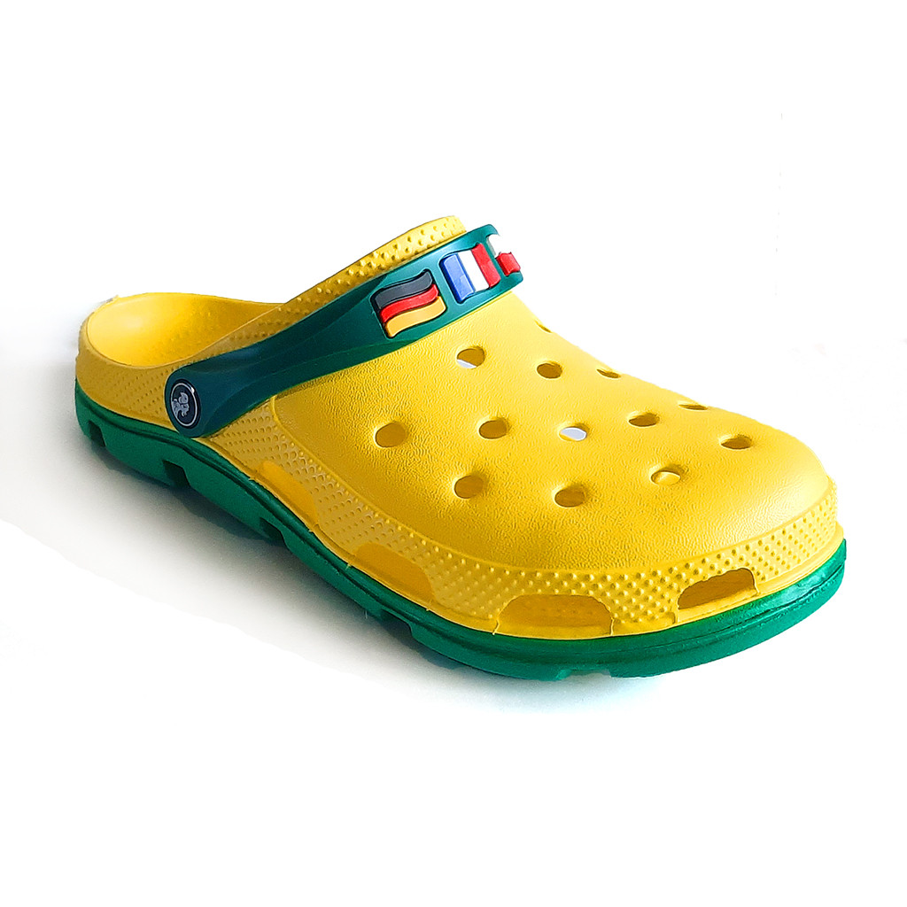 Чоловічі сабо з силіконовою шлеєю, прикрашеної прапорами - оригінальна і універсальна модель, яка підійде як для відпочинку, так і для роботи.