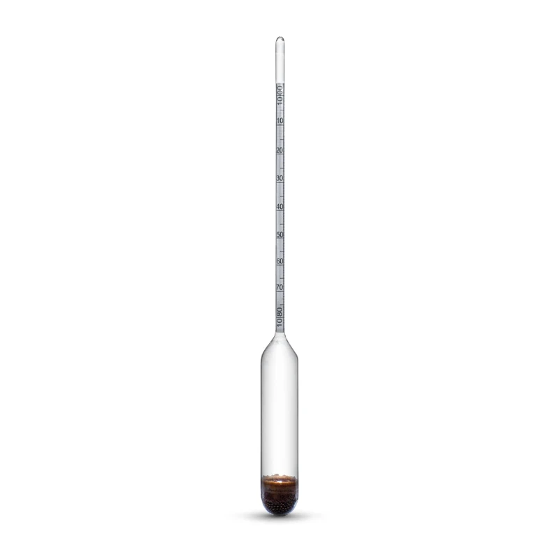 Діапазон вимірювання щільності рідини становить від 700 до 1840 кг/м3. Показники зчитують по нижньому краю меніска.